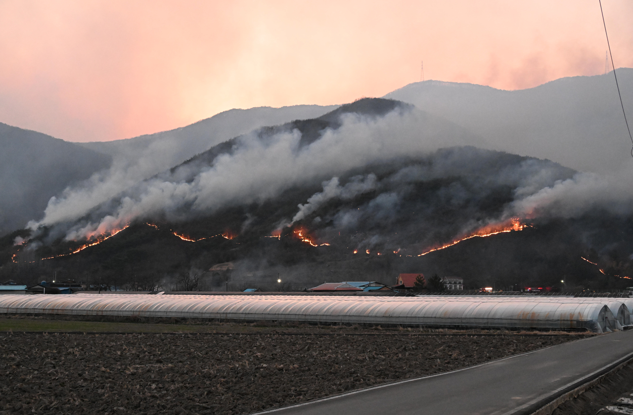 ์ง๋ํด 3์ 25์ผ ๊ฒฝ๋ถ ์์ฑ๊ตฐ ๊ณ ์ด์ฌ ์ฃผ์ฐจ์ฅ์์ ๋ฐ๋ผ๋ณธ ์ฃผ๋ณ ์ฐ๋ค์ด ๋ถํ๊ณ ์๋ค. [๊ฒฝ๋ถ๋ ์ ๊ณต]