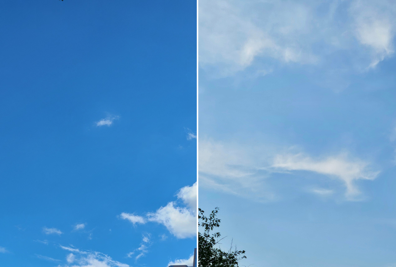 ์ผ๋ก ์ดฌ์๋ ์ผ๋ณธ ๋์ฟ(์ผ์ชฝ)์ ํ๊ตญ ์์ธ(์ค๋ฅธ์ชฝ)์ ํ๋. ์ด๋ ์์ธ์ ๋ฏธ์ธ๋จผ์ง ๋๋๋ โ์ข์โ ์์ค์ ๊ธฐ๋กํ๋ค.[๋